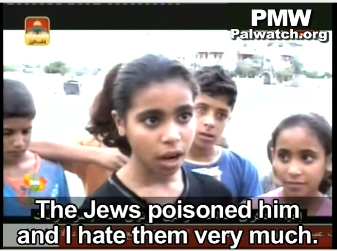 A young girl earlier this year repeated her belief that Israel played a role in Arafat's death, stating that "the Jews killed him":