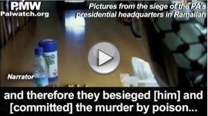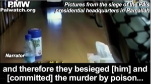This year is no exception. In a new video, which PA TV has been broadcasting several times daily the last few days, Israel "and its allies" are accused of committing "the murder with poison". In addition, PA TV suggests that Israel is plotting to murder PA Chairman Abbas as well, stating that "the plot is renewed":