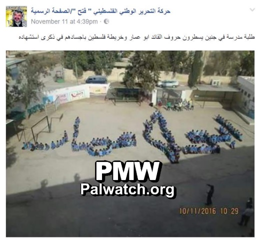 Fatah Facebook: School kids, commemorating Arafat, form map of “Palestine” erasing Israel