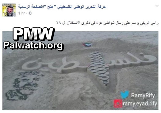 Fatah Facebook posts image of map in sand of “Palestine” erasing Israel