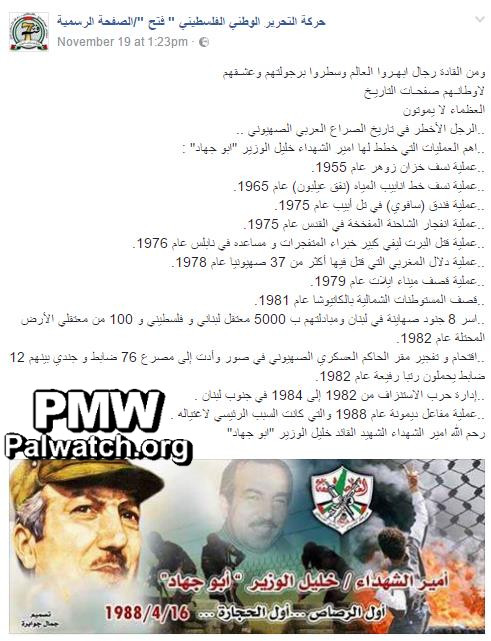 Fatah Facebook proudly lists terror attacks planned by “Prince of Martyrs” arch-terrorist Abu Jihad