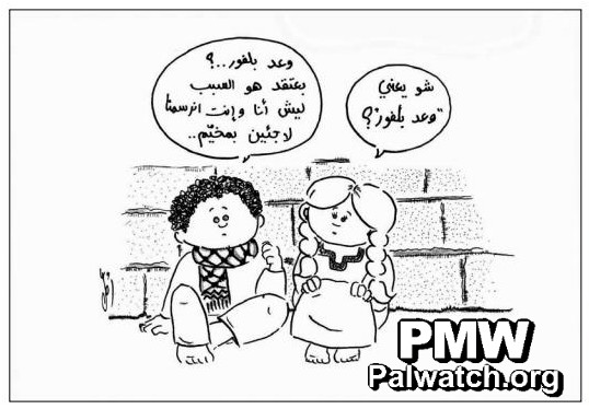 A cartoon showing a Palestinian boy and girl sitting next to each other is included in the article.