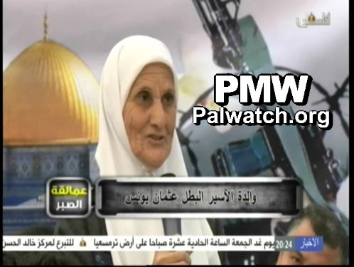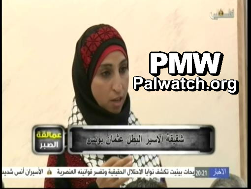 Official PA TV host: “Allow me to go on to the sister of heroic prisoner Othman Younes, be well my sister. Othman [was sentenced to] 4 life sentences and he is also a sick prisoner who suffers from a serious medical condition.”