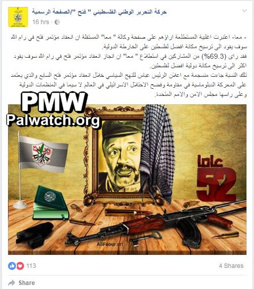 Image posted by Fatah Facebook shows image of Arafat, rifle, other weapons