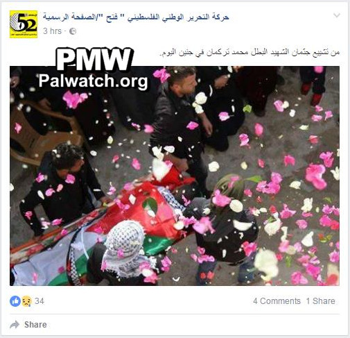 “From the funeral of heroic Martyr (Shahid) Muhammad Turkeman today [Dec. 24, 2016] in Jenin”