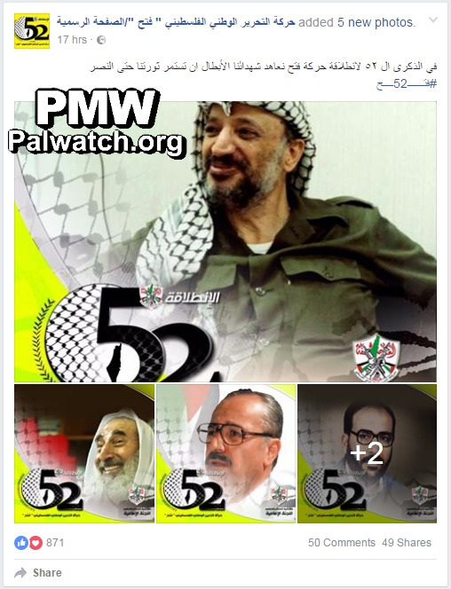 Fatah Facebook glorifies terrorists for 52nd anniversary