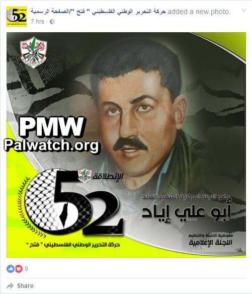 Text on image: “[Fatah] Central Committee member Martyr (Shahid) Commander Abu Ali Iyad