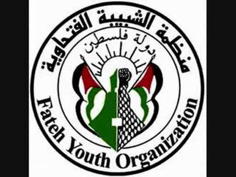 In the upper right corner of the image appears the Fatah symbol, featuring a grenade, crossed rifles, and the PA map of “Palestine.”