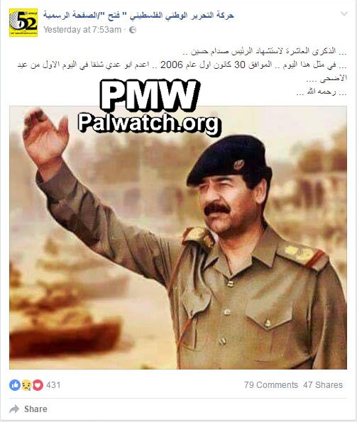 Fatah commemorates 10th anniversary of the death of the "Martyr" Saddam Hussein