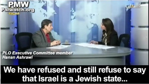 Ashrawi stated that Kerry gave Israel "a great prize" because he referred to "a Jewish state" - something the Palestinians "have refused and still refuse" to accept. In addition, Ashrawi interpreted Kerry's speech as denying the Palestinian "refugees" the "right of return." The two things are interconnected. The PA knows that were significant numbers of refugees to enter Israel they would turn it into a binational state, which is why the PA refuses to accept Israel as a Jewish state.