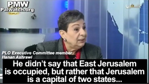 As Palestinian Media Watch has documented numerous times, one of the fundemental impediments to peace is PA rejection of Israel in any borders, and Ashrawi's statement reflects this.