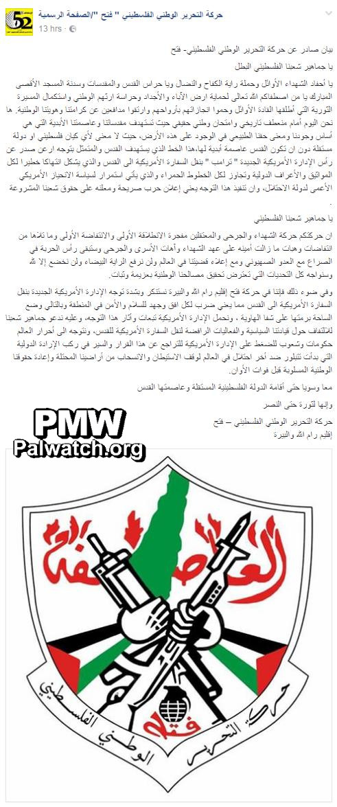 Image and text posted on the official Fatah Facebook page
