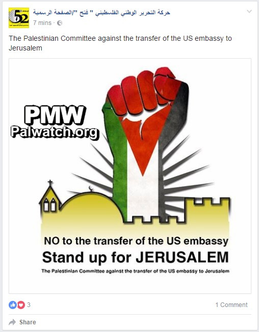 Posted text: “The Palestinian Committee Against the Transfer of the US Embassy to Jerusalem”