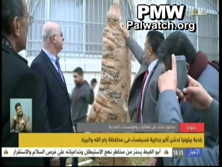 Official PA TV reporter: “Representatives of the [PA] Security Forces, the [PA] Ministry of Tourism and Antiquities, District Governor of Ramallah and El-Bireh Laila Ghannam, and representatives of the public in the city were present at the inauguration ceremony.”
