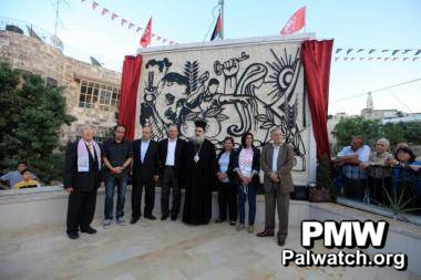 “Bethlehem – The Popular Front for the Liberation of Palestine (PFLP) in Beit Sahour marked the ninth anniversary of the death of Palestinian leader George Habash (i.e., founder of the PFLP terror organization) this evening, Thursday [Jan. 26, 2017]. PFLP staff and members, representatives of the national forces and institutions, and figures from the district came to the Doctor of the Revolution (i.e., a nickname for Habash) monument and wall painting on Young Men’s Christian Association Street in the city, placed wreaths, and lit candles for the event.”