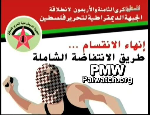 Official PA TV narrator: “Feb. 22, 1969, the anniversary of the founding of the Democratic Front for the Liberation of Palestine and the birth of the armed Palestinian left, which assumes the idea and interests of the working class and is involved in the national battle of its people for freedom, independence, and the return of the refugees to their land. The Democratic Front excelled in its contemplative and political contribution through the Palestinian struggle. It hurried to formulate and present the phased national plan. The political and contemplative role of the front came together with an active role in the struggle through a series of heroic self-sacrificing operations (i.e., terror attacks) such as the Ma’alot-Tarshiha operation (i.e., terror attack, 22 children and 4 adults murdered), Tiberias operation (i.e., bombing attack, 2 high school students murdered), Beit Shean operation (i.e., terror attack, 4 murdered), and Jerusalem operation (i.e., bombing attack, 7 murdered), and during them it sacrificed star Martyrs (Shahids), including several of its prominent leaders and staff, such as Martyrs Abu Adnan Hamad , Omar Al-Qassem (i.e., terrorist, led cell that murdered 2), Khaled Nazzal (i.e., former commander of DFLP’s military branch), Al-Haj Sami, Bahij Al-Majdhub (i.e., terrorist), and the Martyrs of the heroic operations.”