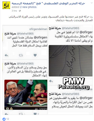 Fatah's post includes Fatah's glorification of the murderer of American citizen Taylor Force. The post, which is primarily Fatah criticism of Prime Minister Netanyahu's spokesman, includes a drawing with the name "Bashar Masalha" - the terrorist who murdered Taylor Force and injured 11 in a stabbing attack in Tel Aviv on March 8, 2016.