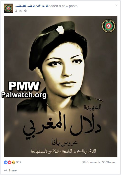 Fatah wrote on its official Facebook page that Dalal Mughrabi is “the legend that will not die.”