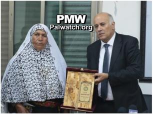 Headline: “Rajoub honored female fighters Fatima Al-Haddar and Fahmiya Awad”