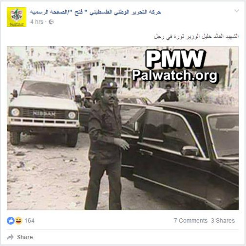 Posted text: “Martyr (Shahid) commander Khalil Al-Wazir (i.e., former head of the PLO terror organization’s military wing) – a revolution in one man”