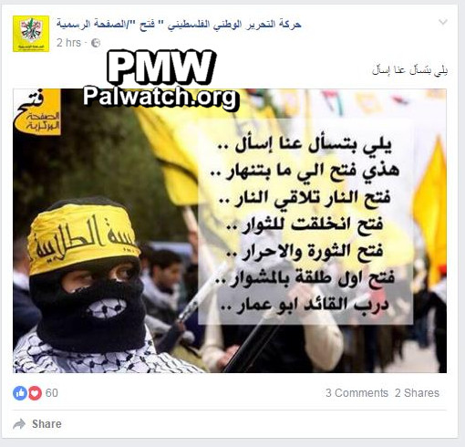 The image shows masked men bearing rifles and Fatah flags while wearing Fatah headbands.