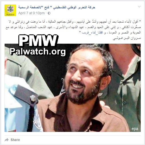Fatah Facebook posts words of imprisoned terrorist murderer Marwan Barghouti