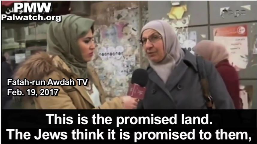 When Fatah-run Awdah TV asked Palestinians about their views regarding US President Donald Trump's "rise to power", one woman explained that "Jews" mistakenly understand the term "the Promised Land" as "a promise to them," however, the real promise is that Allah will "gather" and "exterminate" them:
