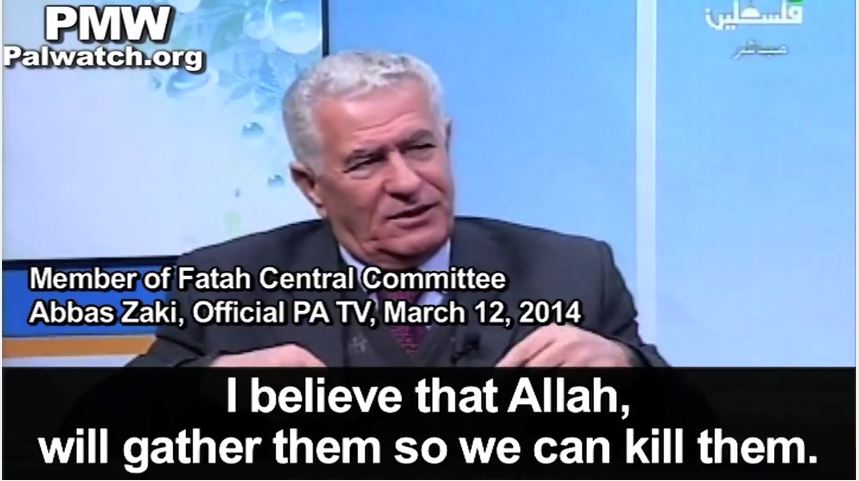 Palestinian Media Watch has documented Fatah leader Abbas Zaki expressing the same belief that Allah will bring together all the Jews/Israelis in Israel so that Palestinians can kill them: