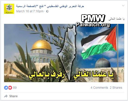 Fatah FB post shows map of "Palestine" erasing Israel with Palestinian flag and Jerusalem mosques