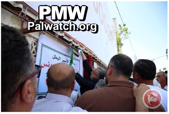 "Tulkarem District Governor Issam Abu Bakr unveiled the square in Tulkarem that was named after prisoner Maher Younes (i.e., terrorist, kidnapped and murdered 1) from the village of ‘Ara in the '48 territories (i.e., Israel)… The district governor said: 'This is in appreciation of fighter Maher Younes, who served and is still serving more than 35 years in the occupation's prisons, and the result of the ban on naming [places] in the Interior (i.e., Palestinian term for Israel) after Martyrs (Shahids) and prisoners. I thank the Tulkarem Municipality and all of the district's bodies for this national act of standing by the prisoners and expressing support for them. We permanently stand by our fighters, who should be victorious in the [hunger] strike of dignity and freedom that has been going on for the last 25 consecutive days.'"