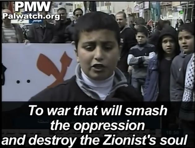 A poem which encourages Palestinians to go to "war" and "destroy the Zionist's soul" has again been recited by a child on official PA TV, this time on the children's program The Best Home. When the boy finished the poem, the studio audience stood and cheered while the host congratulated him: