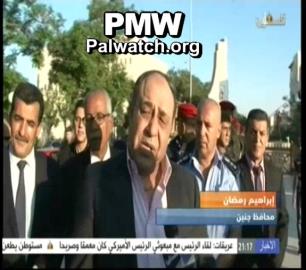 Official PA TV News, interview with Jenin District Governor Ibrahim Ramadan in a street in Jenin