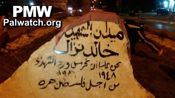 Last week Palestinian Media Watch exposed that the PA had named a square in Jenin after terrorist Khaled Nazzal who planned the attack that led to the murder of 22 children and 4 adults in the Ma'alot Massacre on May 15, 1974. A monument with an inscription had also been erected in his honor at the square.