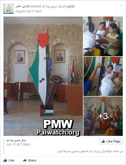 Kids at Palestinian Authority - funded summer camp create sculpture of "Palestine" that erases Israel