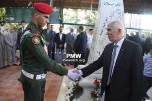 “[District Governor of Hebron Kamel] Hamid praised the large and exceptional attendance of the residents who filled the plazas of the Ibrahimi Mosque (i.e., Cave of the Patriarchs), even though the occupation delayed the worshippers’ arrival through the checkpoints around it. He also emphasized that this is a purely Islamic mosque, and that all of these racist steps will not succeed in Judaizing the mosque and the old city [of Hebron]… Afterwards, Hamid lay a wreath of flowers on the grave of the Martyrs (Shahids) and read the Al-Fatiha Sura [from the Quran] for their souls at the Al-Sheikh neighborhood of Hebron.”