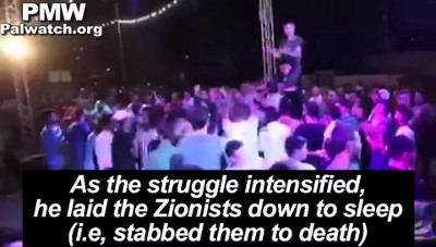 And indeed, at one Palestinian wedding, the following song celebrating the murders and honoring the murderer was performed: