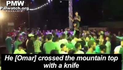 Palestinian singer Muhammad Abu Taher Al-Barghouti was later arrested on charges of incitement by the Israeli army on Aug. 31, 2017 for this song honoring terrorist murderer Omar Al-Abd.