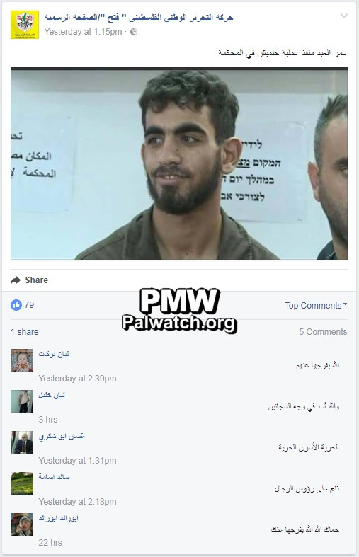 • Comments to Fatah Facebook post of murderer in court:
