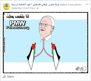 Fatah Facebook posts cartoon of PLO negotiator with lungs made of maps of "Palestine" erasing Israel