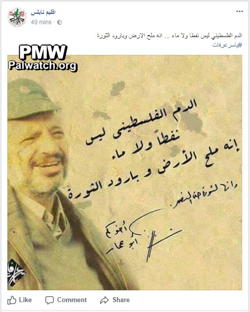 Fatah Facebook: “The Palestinian blood… is the gunpowder of the revolution”