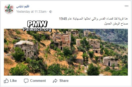 Fatah Facebook: Village of Lifta was “occupied by the Zionists in 1948”