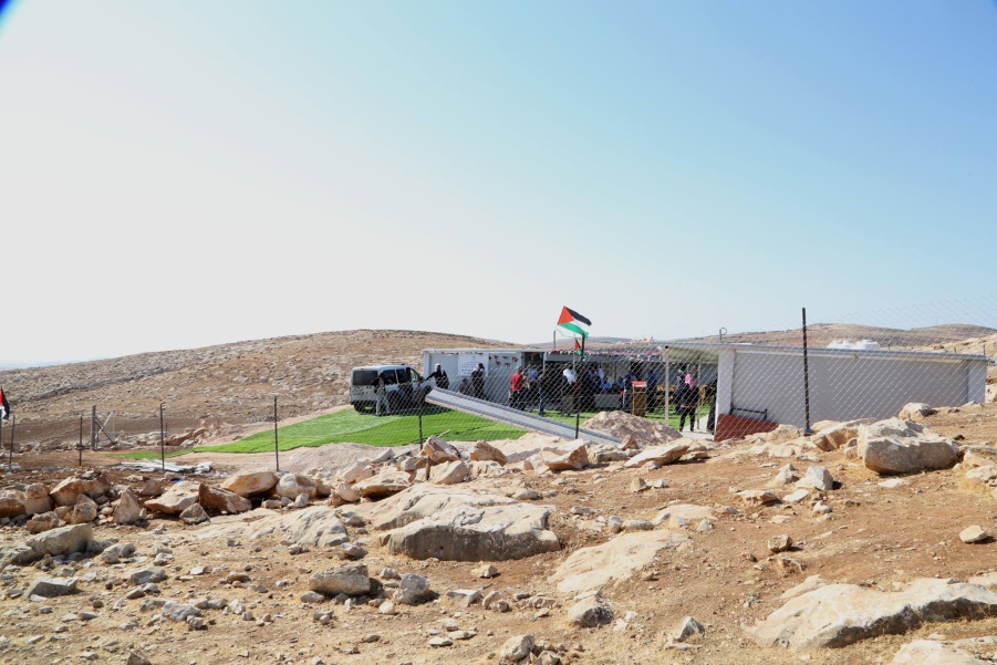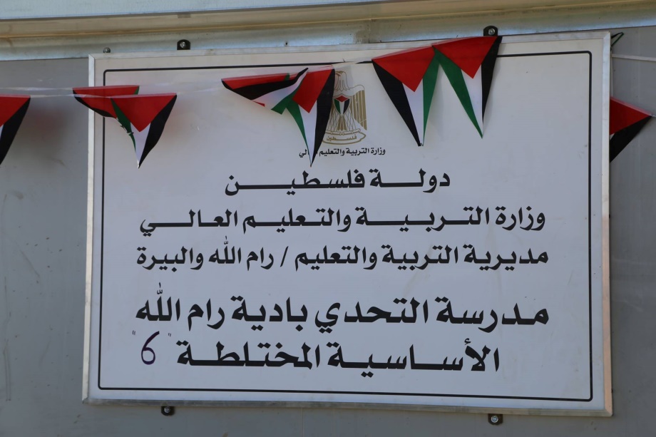 The minister of education emphasized that this school comes as part of a series of schools for defiance and resolve that the ministry has established in areas being targeted by the occupation (i.e., area C under Israeli jurisdiction where building is illegal without a permit –Ed.) He emphasized that the building of these schools in these regions conveys a message to the whole world that emphasizes the sanctity of education in the eyes of all Palestinians and the students' determination to continue studying, despite the difficult conditions they are experiencing in the shadow of the occupation and settlement.