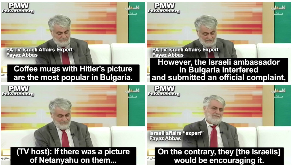 In a show on official PA TV, the hosts compared Israeli Prime Minister Netanyahu to Hitler. The discussion was about mugs with a picture of Hitler that were “the most popular in Bulgaria” that had been removed from stores by police following a complaint by Israel’s ambassador.