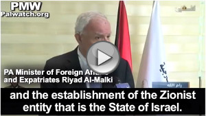 Official PA TV newsreader: "[PA] Minister of Foreign Affairs and Expatriates Riyad Al-Malki said that the [PA] leadership intends to submit a lawsuit, according to the instructions of President Mahmoud Abbas, if Britain insists on celebrating the 100th anniversary of the ominous Balfour Promise (i.e. Declaration)..."