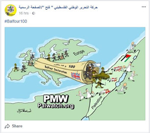 Posted text: “#Balfour100 (refers to the 100th anniversary of the Balfour Declaration on Nov. 2, 2017 –Ed.)”