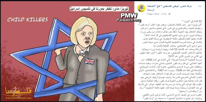 Cartoon posted on Fatah Facebook page depicts UK PM Theresa May as a pig, for being proud of UK’s role in Israel’s establishment