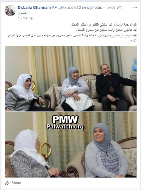 Images and text posted on the Facebook page of District Governor of Ramallah and El-Bireh Laila Ghannam