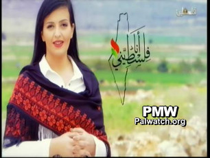 An official PA TV program "I'm Palestinian" displays a logo in the shape of the PA map of "Palestine" that erases all of Israel, and on it the words "I'm Palestinian." The image is from the opening of the program.