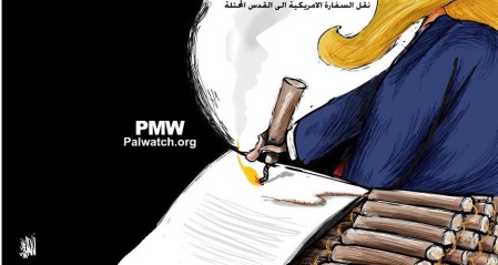 Cartoon on Fatah website shows Trump signing embassy transfer with a lit fuse of dynamite in place of a pen