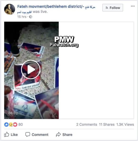 Fatah Bethlehem branch Facebook page posts video of Palestinians shouting: “The US – the head of the snake; The US – a terror state”